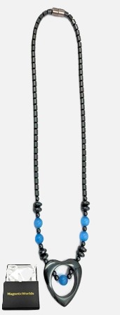 35mm Open Heart Magnetic Therapy Necklace with Blue Beads for Women #MHN413